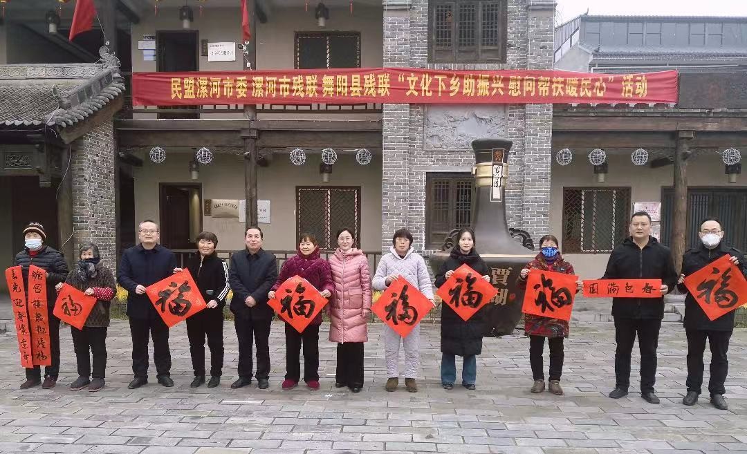 1月13日,民盟漯河市委、漯河市残联、舞阳县残联联合在舞阳县贾湖村开展“文化下乡助振兴 慰问帮扶暖民心”活动。漯河市残联理事长、民盟漯河市委副主委郭德菊,舞阳县政府三级调研员陈永军,县残联党组书记、理事长陈乐民,盟市委秘书长柳晓,市残联宣文部负责人梁树文等参加活动。
