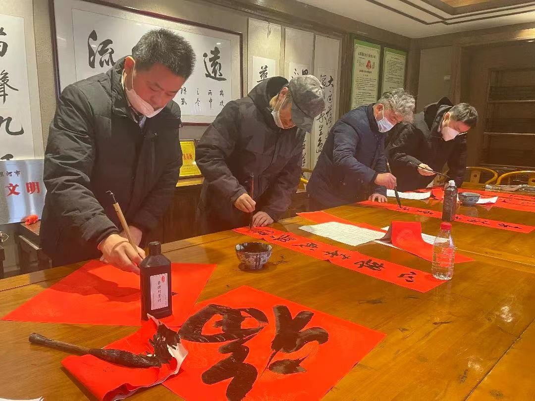 活动现场,民盟书画院师晖、王学军、段永辉等盟员书画家和村民们的热情高涨,摆桌、展纸、蘸墨、起笔,饱蘸祝福的毛笔在喜庆的红纸上笔走龙蛇,年味跃然纸上,祝福送到心上。领到春联福字的群众喜气洋洋,提前感受到浓浓的节日氛围。多年来,民盟漯河市委坚持开展“写春联送祝福”文化进基层活动,先后为20多个村(社区)群众送去上万幅春节礼物,既丰富了群众的精神文化生活,又将书法等优秀传统文化传播到千家万户。