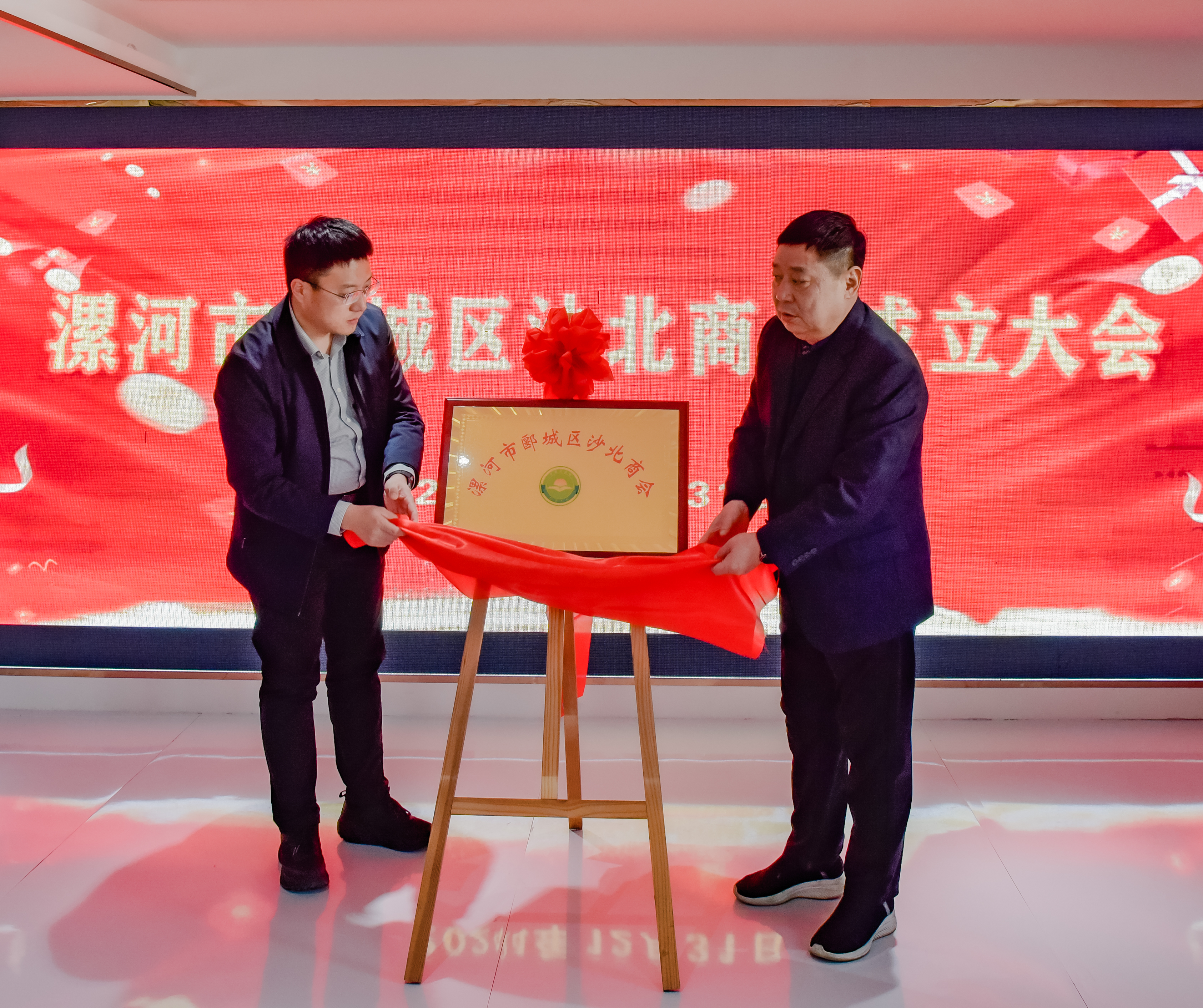 会议审议通过了《漯河市郾城区沙北商会章程(草案)》等相关章程制度,通过民主选举产生了商会首届领导班子。何向涛和新当选的商会会长刘新波共同为沙北商会进行揭牌。