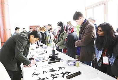 我市还为留学生及指导老师举办了“许慎与《说文解字》”专题讲座。留学生及指导老师参观许慎文化园、拜谒许慎墓、体验活字印刷术,做汉砖拓片,与漯河的书法家进行交流。俄罗斯留学生索菲亚说:“来到许慎文化园,了解了汉字的演变过程等,我学到了很多知识,感受到浓郁的汉字文化氛围。”