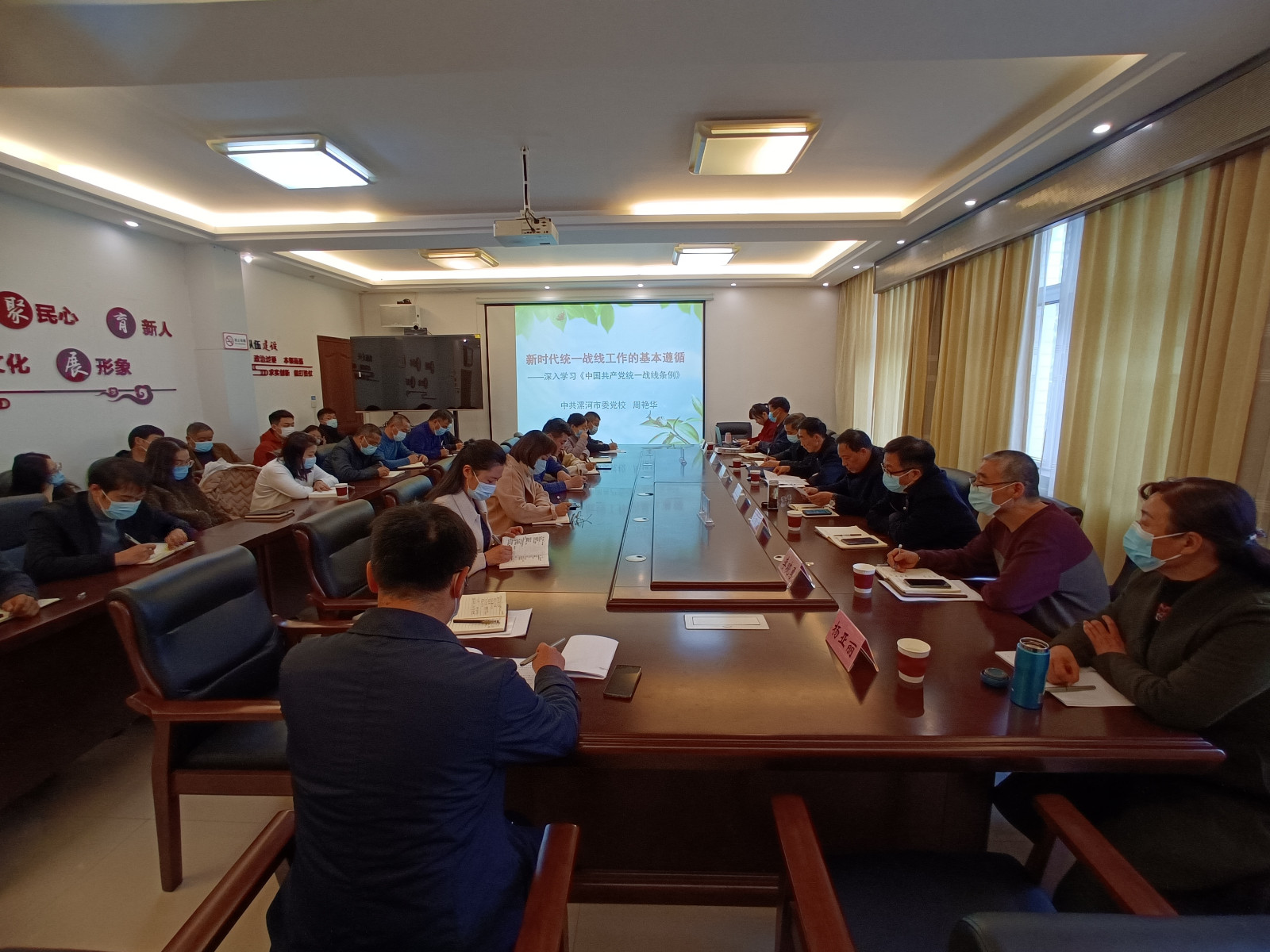 2月7日下午,漯河市委统战部召开理论学习中心组扩大会议,集中学习了习近平同党外人士共迎新春时的讲话精神、全市一体推进不敢腐不能腐不想腐深化以案促改工作暨廉政谈话会精神,通报了有关案例,开展了节前廉政谈话,举办了统战工作专题辅导。会议由常务副部长李延恒主持。市纪委监委派驻第四纪检监察组、市社会主义学院有关负责同志,部机关及二级机构全体人员参加会议。