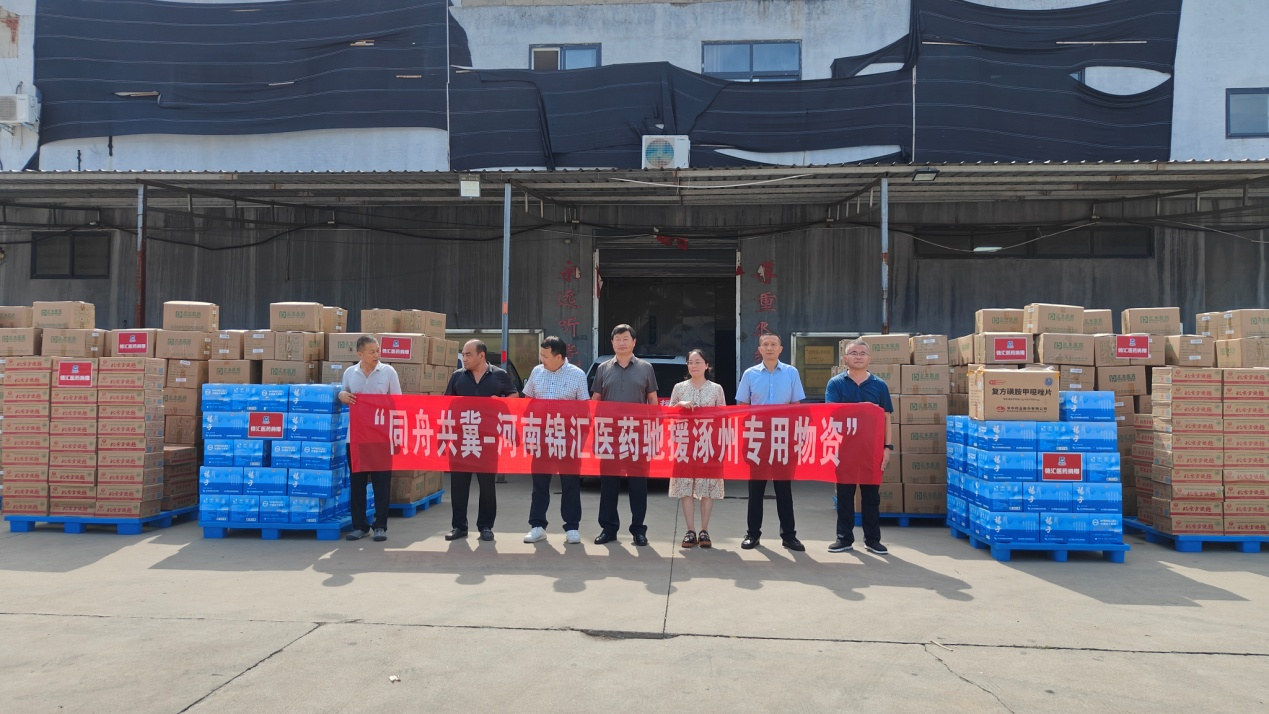 8月11日下午,漯河市临颍县工商联执委企业河南锦汇医药有限公司向灾区河北涿州市东仙坡镇政府捐助医药消杀用品等共计三十六万余元。